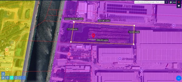 ที่ดินสีม่วงเข้ม บางนาตรา คลองส่งน้ำสุวรรณภูมิ สร้างโรงงาน สร้างโกดัง เนื้อที่ 10-3-20 ไร่ ขายไร่ละ 17 ล้านบาท บางพลี สมุทรปราการ